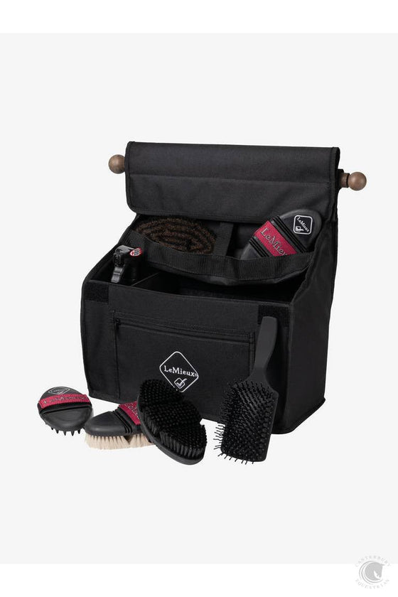 Keep you grooming kit exactly where you need it with the super handy LeMieux Grooming Bag with Bar. Use the reinforced metal eyelets to hook the bag up to your stable or lorry (especially handy using the LeMieux Hook & Loop Straps)  Inside, the numerous compartments keep your grooming essentials tidy. Front zip pocket for easy access and front Velcro closure. Strong waterproof denier nylon outer and simple carry handle.