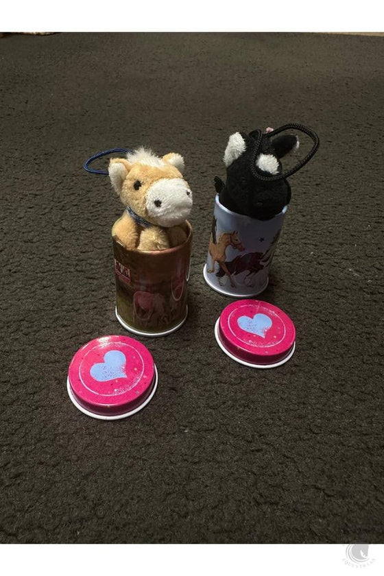 Small Horse Pendant in metal tins, three different styles. Plush, 100% polyester filling, surface wipe. Colour will be chosen at random
