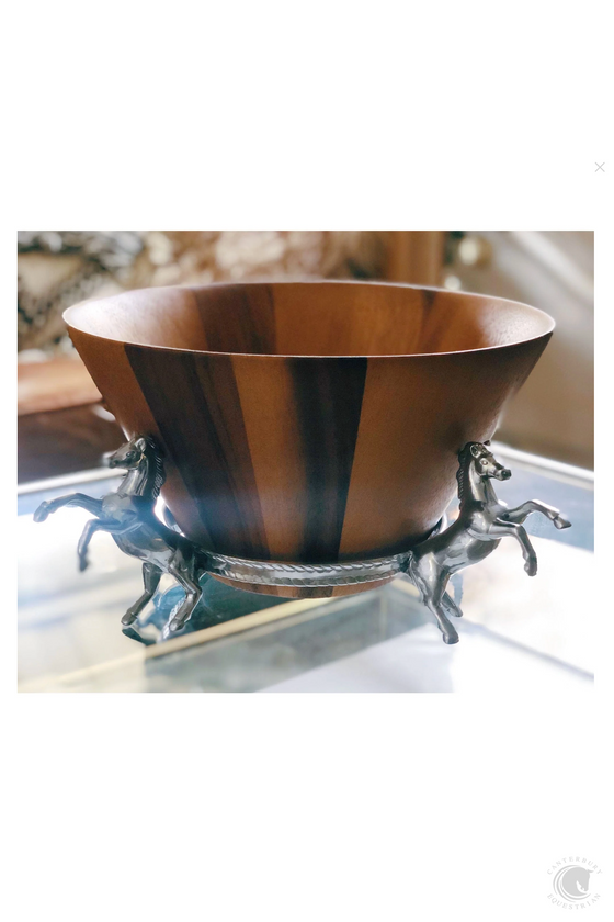 Grace your table with the prominent display of this Tall Horse Wood Salad Bowl from Arthur Court.