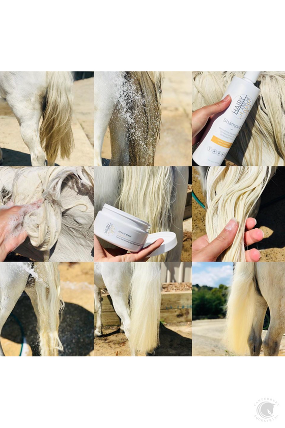 Hairy Pony Hair Repair is formulated for dehydrated, under-nourished, and damaged hair. It contains Hydrolysed Quinoa, Argan Oil, Macadamia, Elderflower and Jojoba to deeply moisturise and nourish manes and tails naturally.