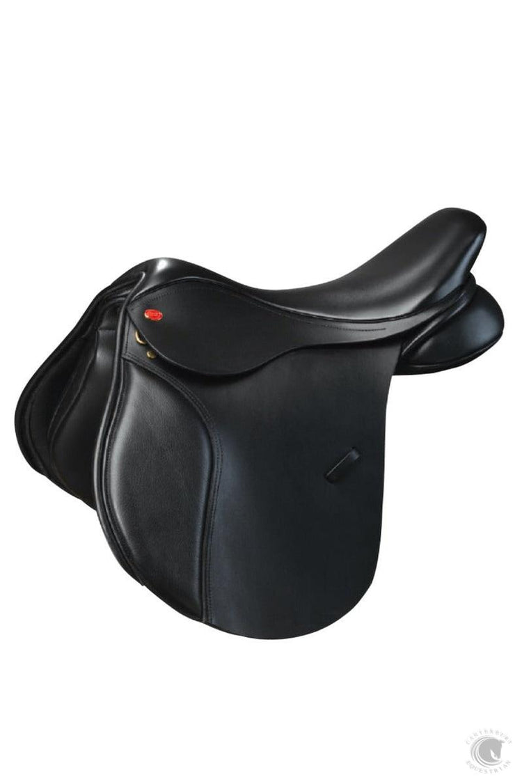 Designed specifically for Cob types, this low-profile saddle has a flat tree shape and straighter-cut slimline panels to minimize bulk between horse and rider. Adjustable girthing options enable optimum saddle stability to be achieved. Low profile saddle is designed to fit the low withered, broad-backed Cob types Tree shape, slim-line panels and girth strap arrangement maximize saddle stability Bulk between horse and rider has been minimized for improved rider control and closer contact Luxurious hide knee pads and seat ensure maximum rider support and comfort Suitable for many styles of riding, including flatwork, jumping and hacking.