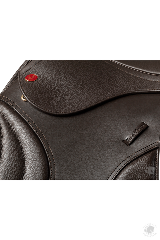 Built on a new tree with longer swept-back points to support the front of the panel and allow freer shoulder movement. Seat is shaped to enable the rider to dynamically adjust their centre of balance over the fence. Broad panels and girthing options maximise contact and saddle stability.