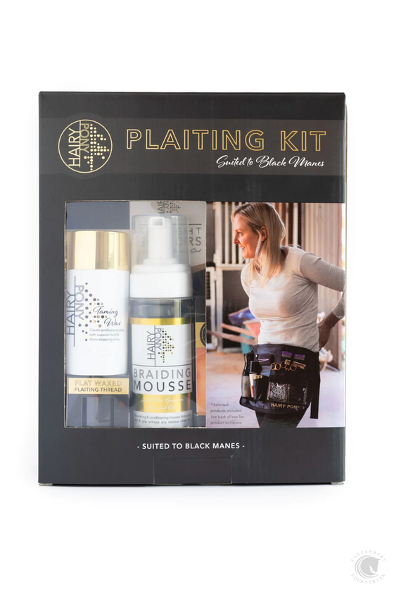 The HAIRY PONY PLAITING KIT includes everything you need to plait & braid your horse, all in a luxury HAIRY PONY GIFT BAG! Show preparation has never been easier (and a whole lot quicker!) with our signature plaiting products, including the game-changing HAIRY PONY PLAITING APRON.