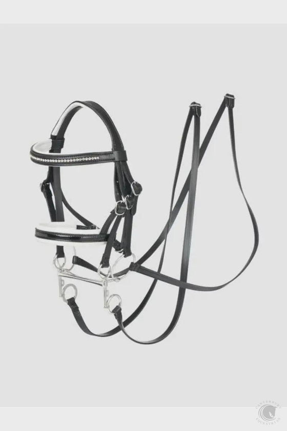 A snazzy crystal padded browband gives the LeMieux look, while a soft white leather and black patent leather padded noseband lends an authentic dressage appearance.
