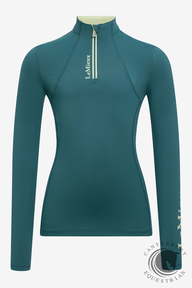 Do it all in this UV50+ quarter zip base layer. Its technical fabric regulates your body temperature, with vented underarms to keep you cool and dry. Contrast matte logo print is a subtle sign of the quality you expect from LeMieux.
