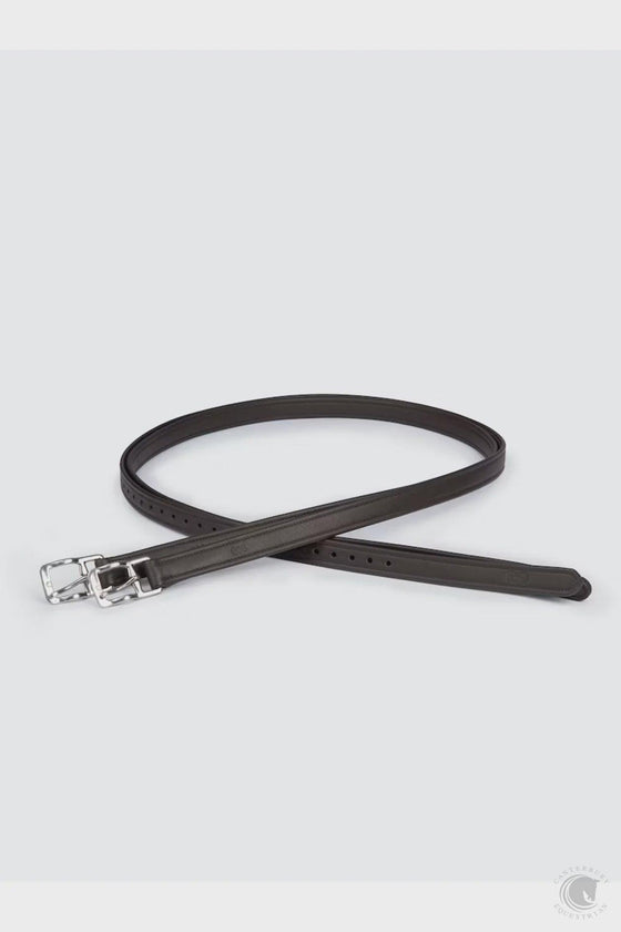 Constructed with three layers, high-quality, soft leather strengthened with nylon, to prevent leather from growing. Numbered punch holes with 1.5 cm of space between them, designed to provide precise length adjustment. The stainless steel buckle has a rounded shape and sits flat against the saddle, buckle has a neat shiny silver finish.