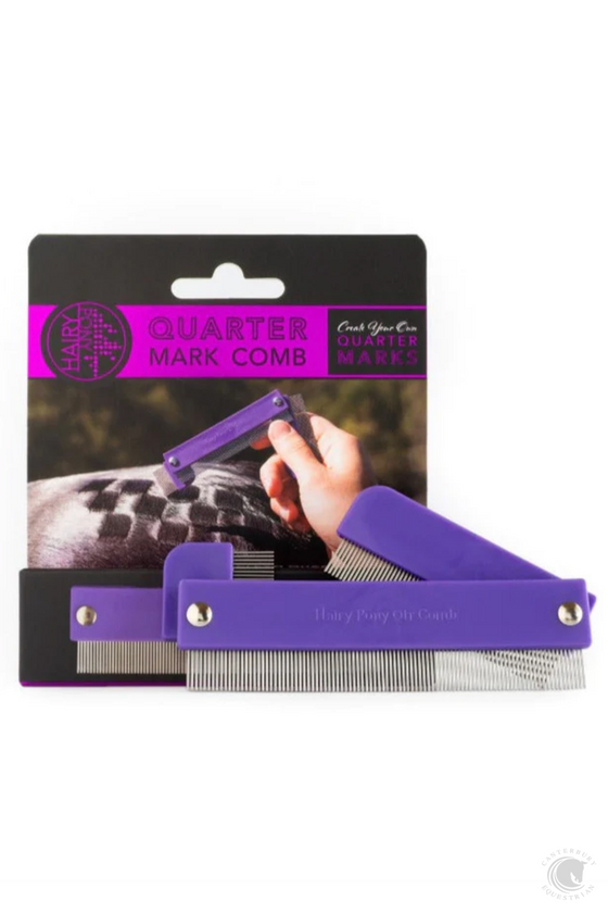 HAIRY PONY QTR MARK COMB is the perfect tool to create crisp, clean quarter marks in 3 distinct sizes. Our comb features super-fine, stainless steel teeth to ensure your are not left with lines in your patterns, or broken & bent teeth.
