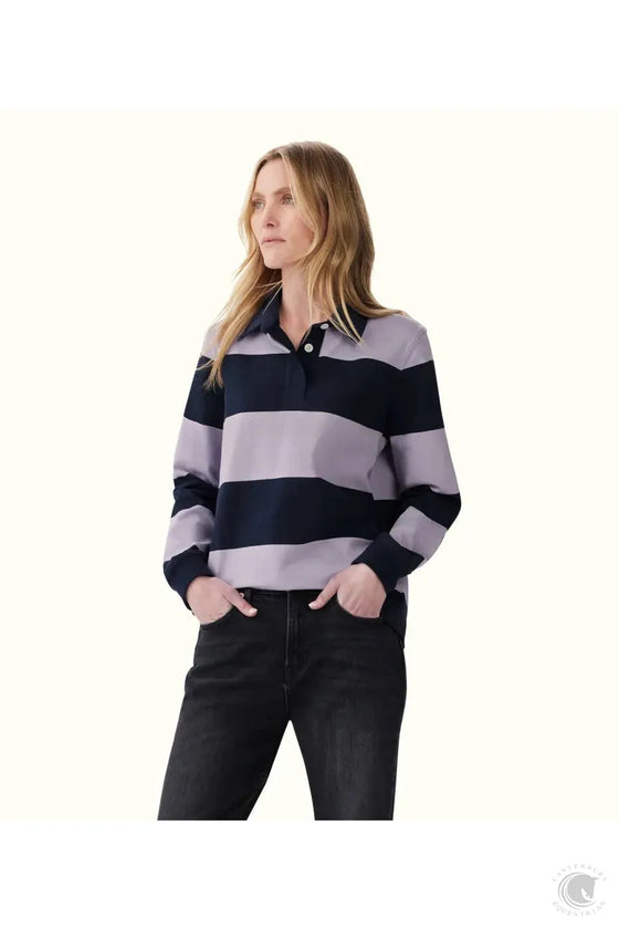A feminine take on our bestselling rugby silhouette for men, complete with contrast stripes, a cotton twill collar and script embroidery on the chest.