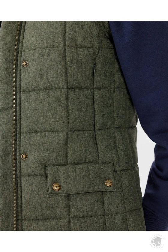 The Wilpena Creek Vest is a sporty, functional style designed for adventures. It's crafted from a durable recycled polyester cotton blend with polyester-filled checked quilting, creating a soft, comforting feel. A blend of functionality and style, it's cut in a sleeveless shape with a stand collar, handy pockets and zip closure, covered by a press stud storm flap.