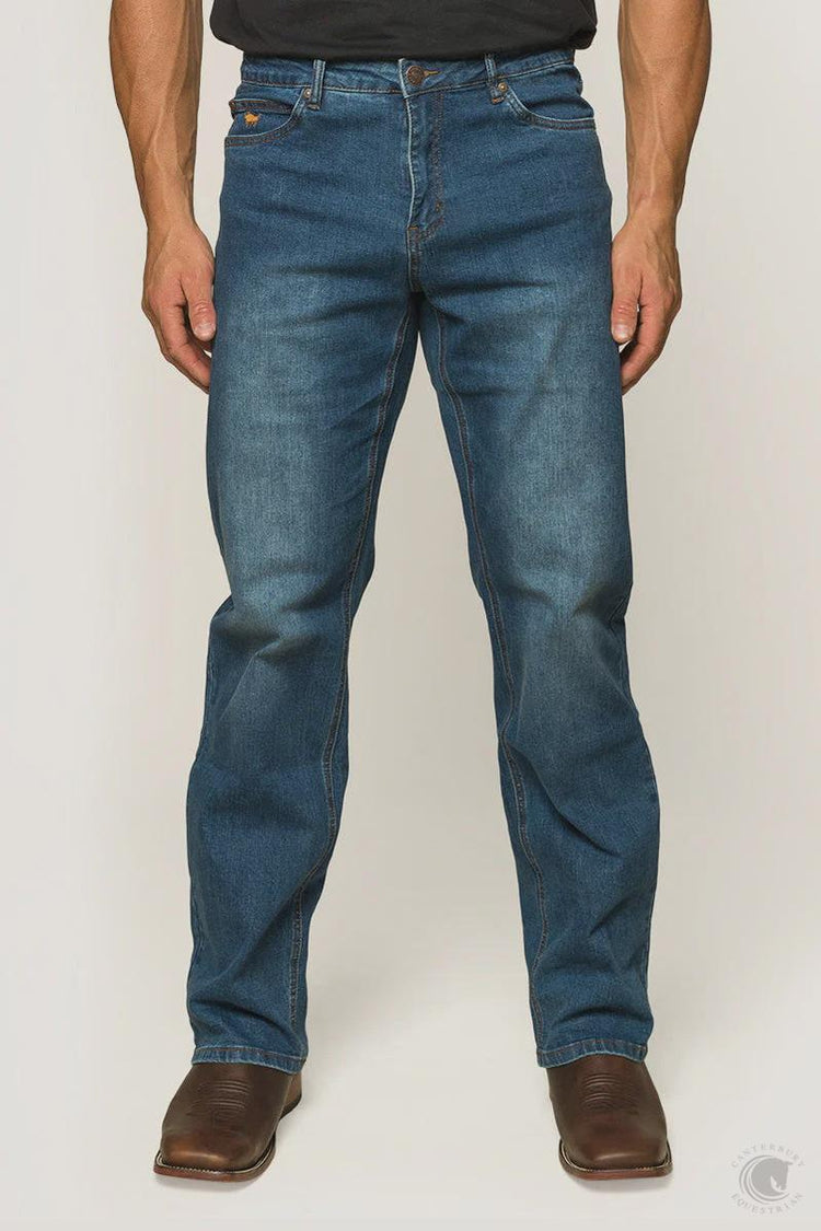 When it comes to traditional 'cowboy-style' blue denim jeans, the Ringers Western Sturt is all that and more. Made with ultra-high-quality stretch denim and with a relaxed fit through the hip, seat, and thigh, the Sturt Men's Leg Jeans are a 'must-have' for every cowboy's wardrobe.