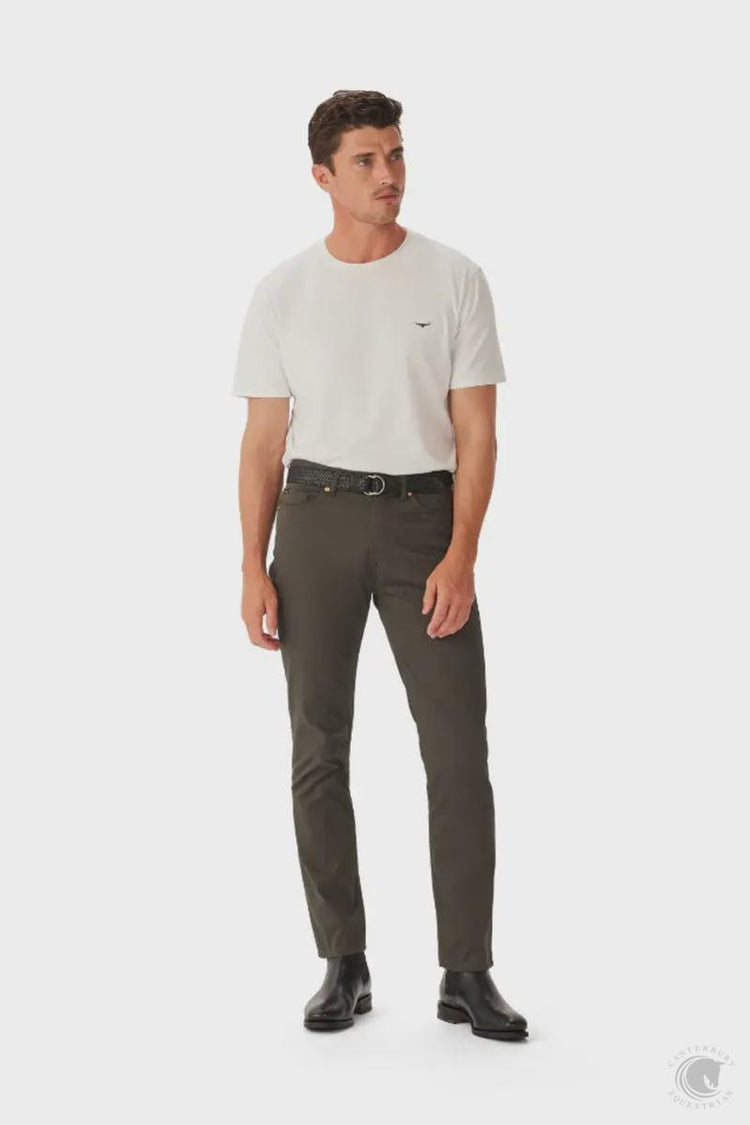 These jeans offers a slim fit with branded hardware, a zip fly, and full-length styling. Crafted from Australian stretch cotton twill, they feature a Longhorn label on the coin pocket. Slim leg Branded hardware Zip fly 5 pocket jean Full length Longhorn label on coin pocket 98% Australian Cotton, 2% Elastane