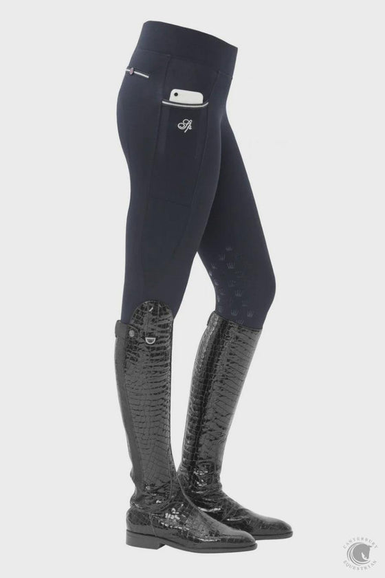 Super light riding leggings with an extra wide waistband for a perfect fit and a practical mobile phone pocket on the right leg. The grip is provided with small SPOOKS crowns.