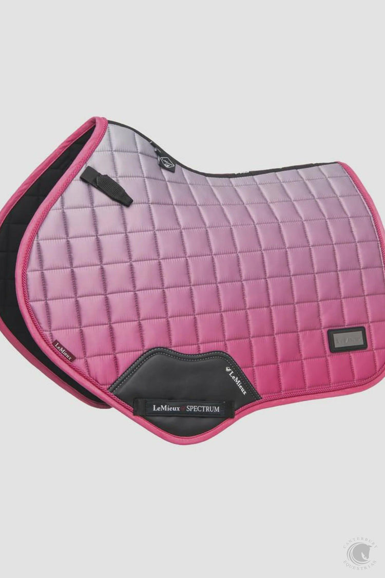 Stand out in style with the LeMieux Spectrum Collecton.  Made with a luxurious, woven Satin fabric that gives a beautiful sheen to the graduated colour transition. The 100% natural Bamboo material controls heat & sweat and wicks very efficiently. The whole pad benefits from a new extensively researched soft friction-free suede binding which is specially fabricated to smoothly contour the edges. This new technique helps retain the perfect saddle pad shape and binding profile. The textured pu leather girth protection area is complimented by an embossed logo and carries the usual signature LeMieux lower girth strap with its inner locking loops, and the D-Ring tabs hold the pad securely to the saddle  The collection is finished off with a unique iridescent badge in the lower back corner for an added shimmer