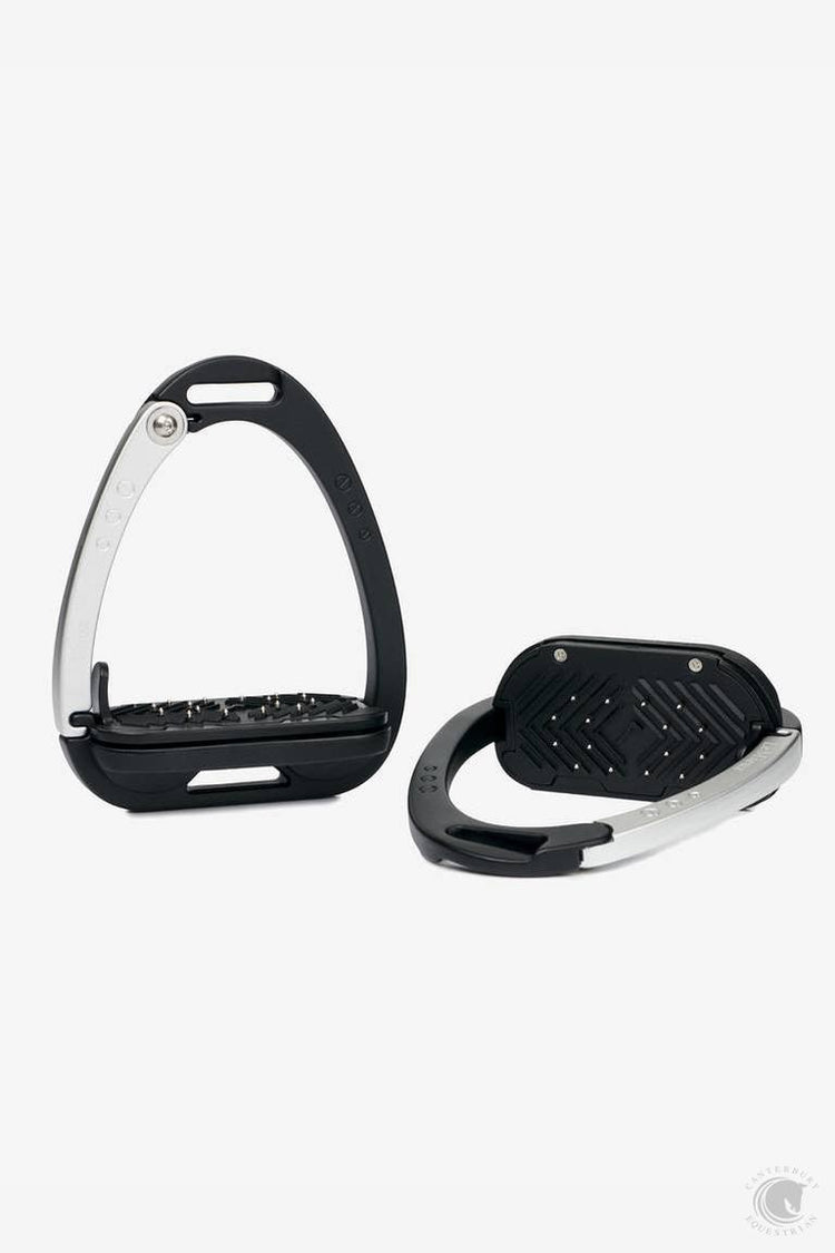 The footplate is supported by a twin balance arch system that distributes the weight evenly across the base of the stirrup frame. The apex of the frame is recessed and off-set, encouraging a 45¼ outward orientation which makes it easier for the rider to locate the optimum angle for the foot and regain a lost stirrup.