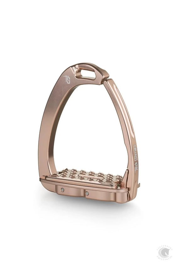 As all the PATENTED Tech Stirrups are entirely produced in Italy. They are made from aluminum billet and fitted with stainless blocked screws. They are treated with a 20 micron anodization to preserve the aesthetic quality.