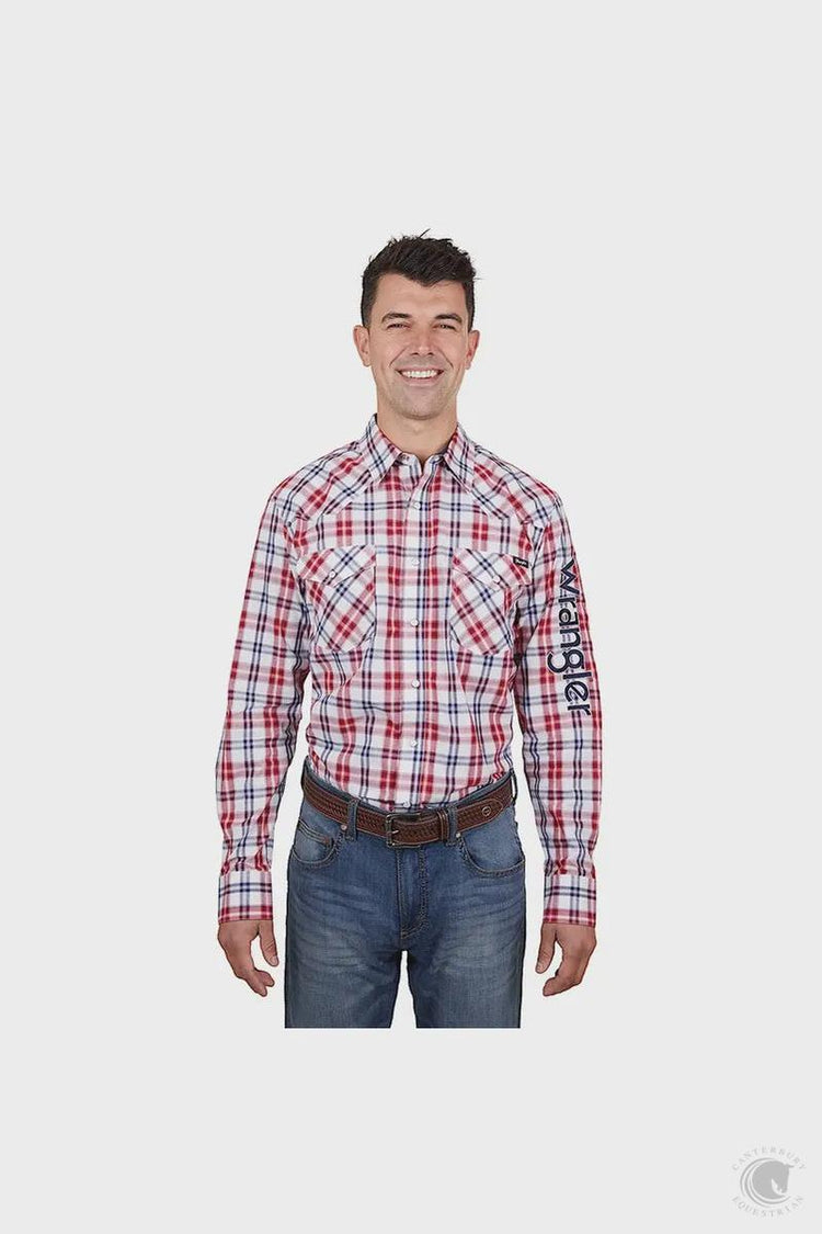 The Wrangler Men's Dan Logo Shirt White/Red is a classic yarn dyed check that'll get you yee-hawing.
